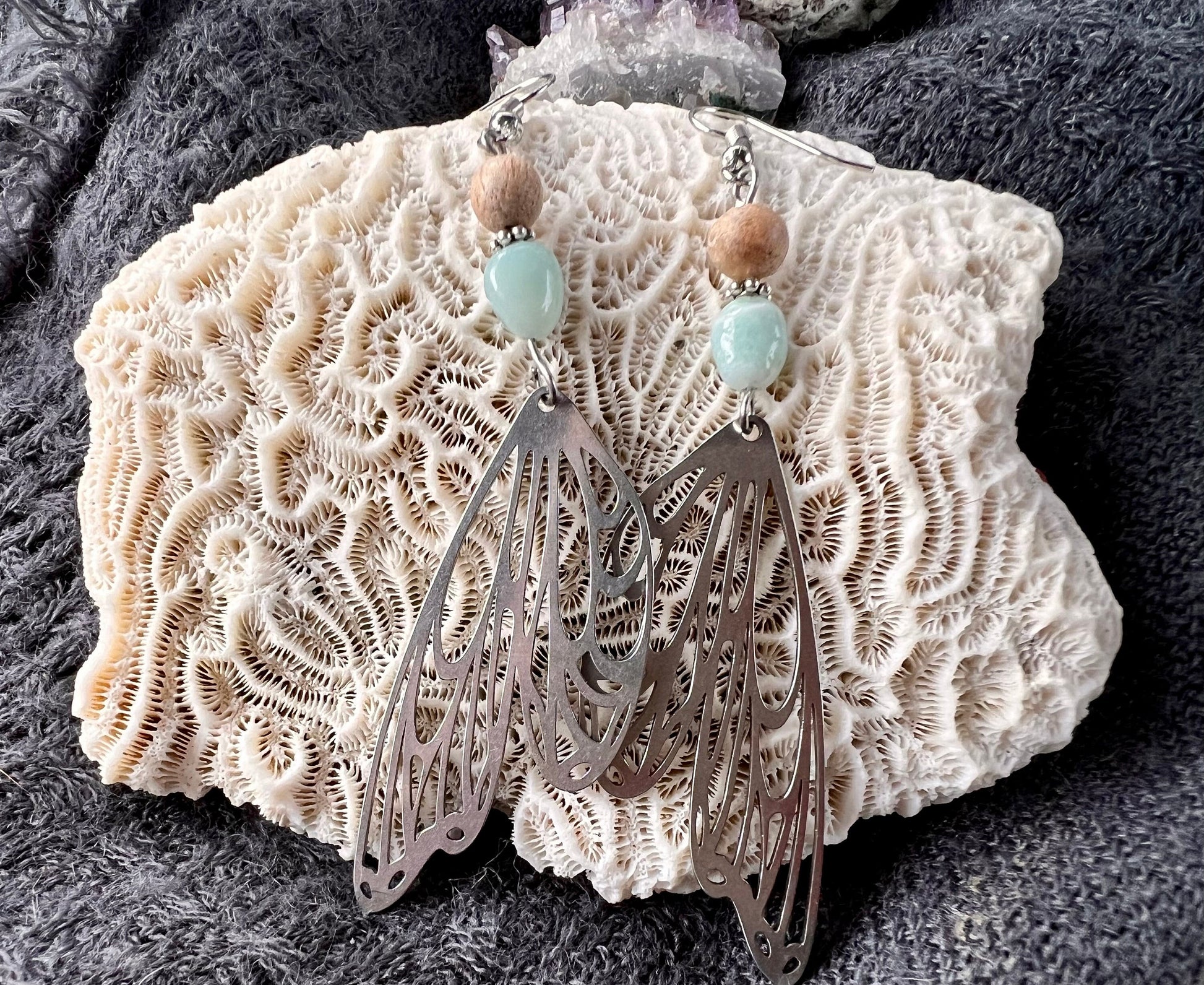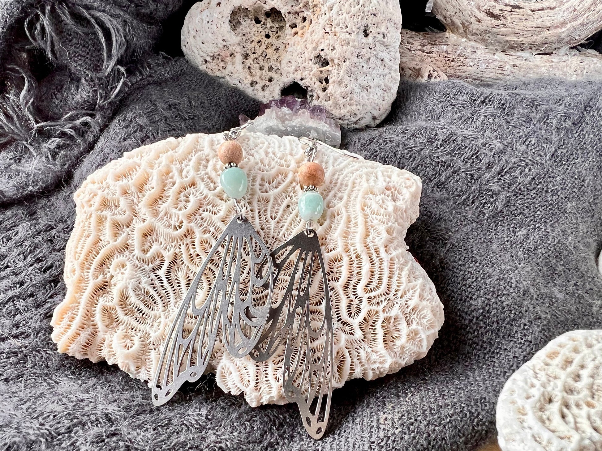 Delicate Butterfly Wings Earrings with Amazonite stones