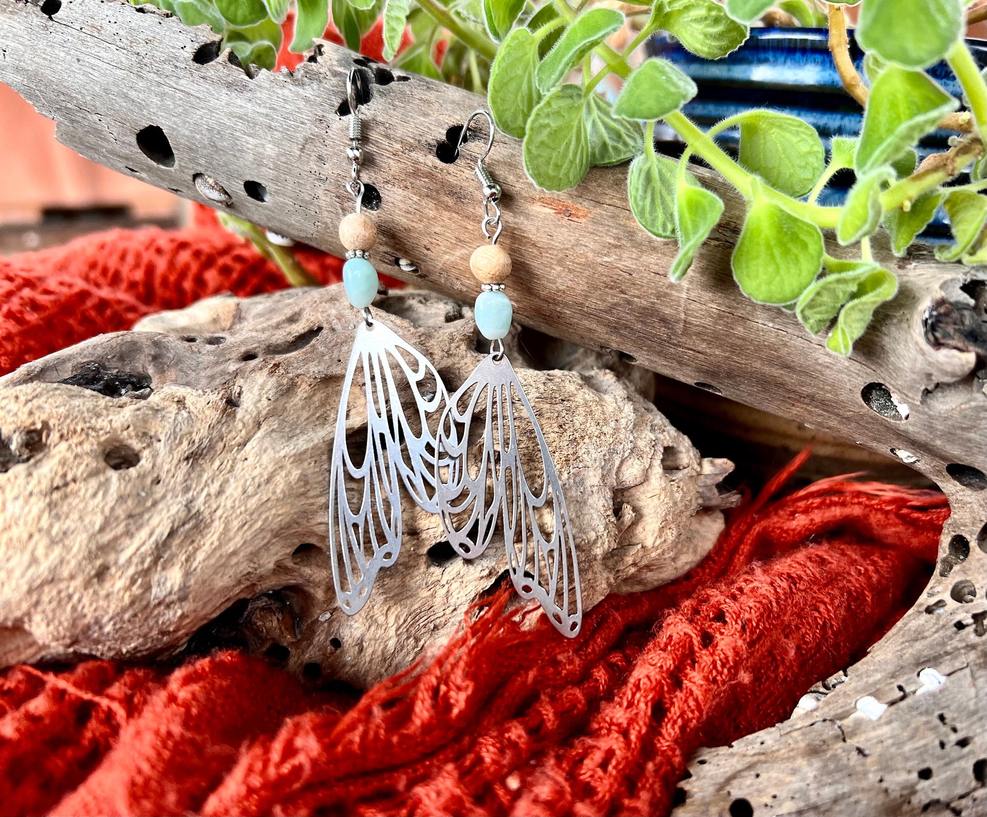 Delicate Butterfly Wings Earrings with Amazonite Stones