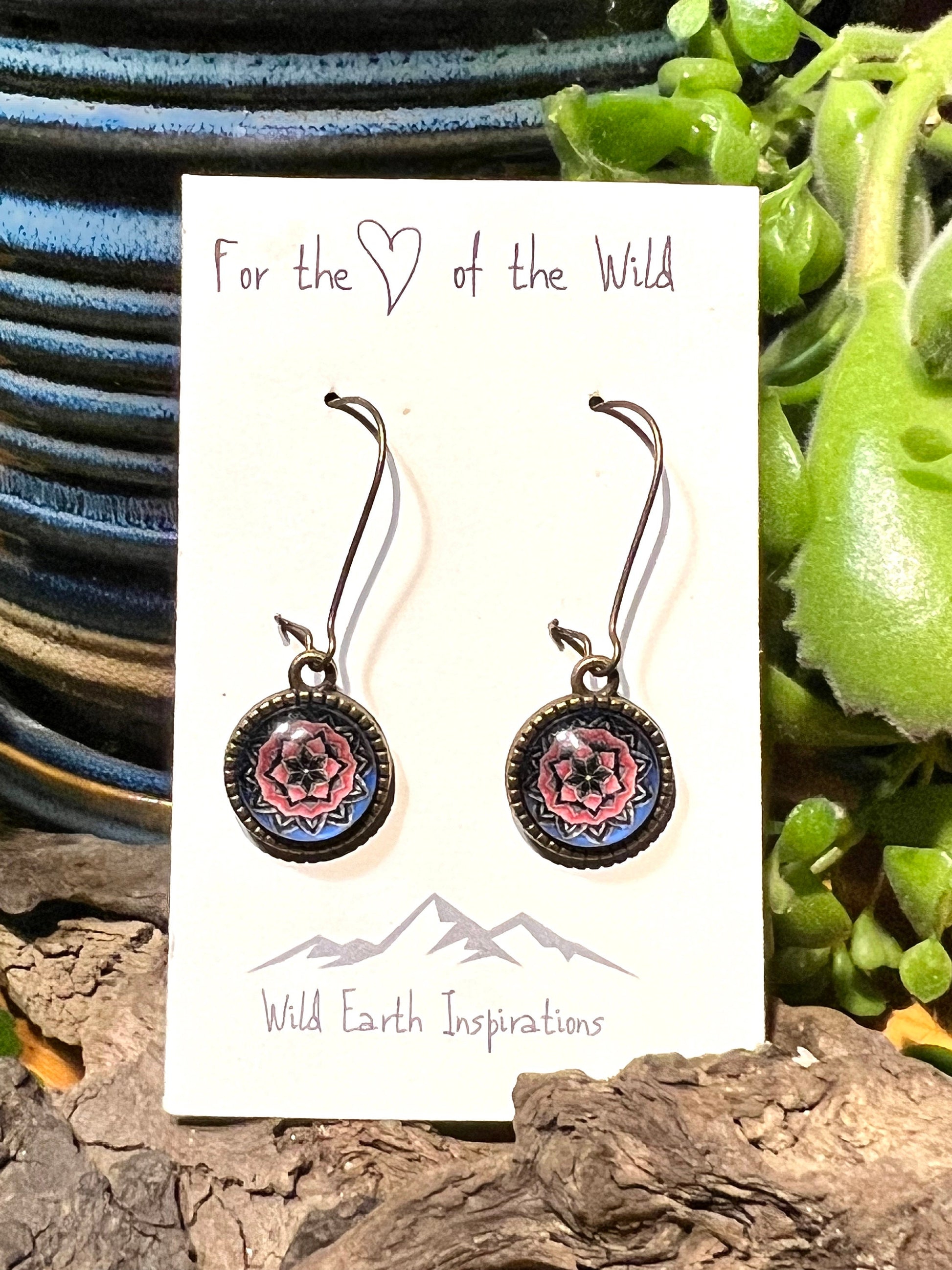 Blue Jeans Mandala Dangle EarringsKidney wire back.